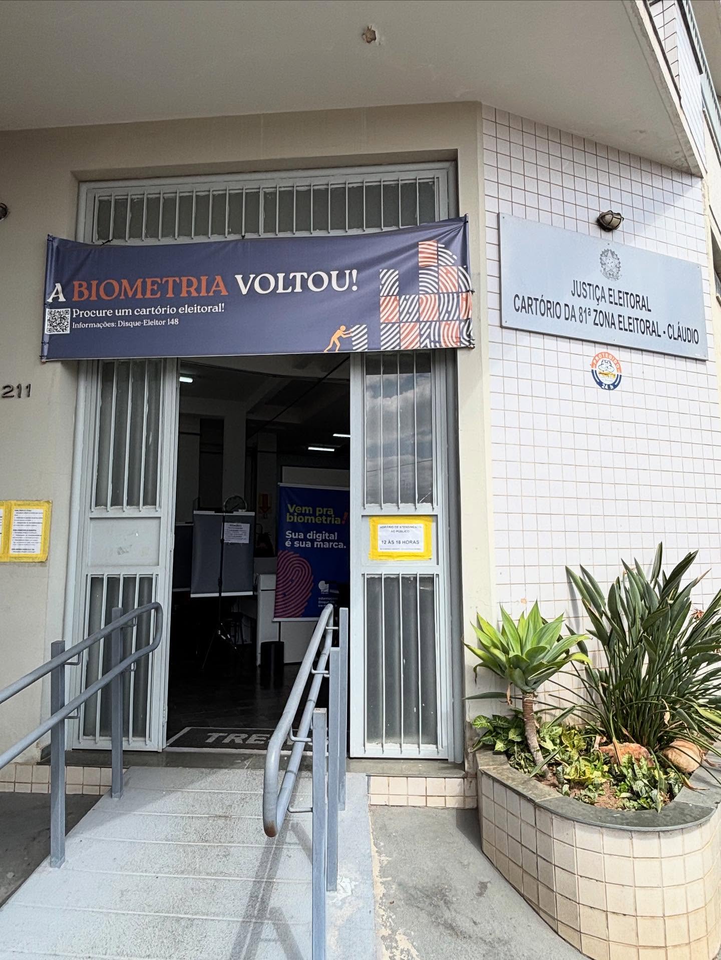 Além de Cláudio, todos os cartórios eleitorais e centrais de atendimento ao eleitor em Minas Gerais estarão abertos das 9h às 17h com atendimento especial para a população que ainda não realizou a biometria.