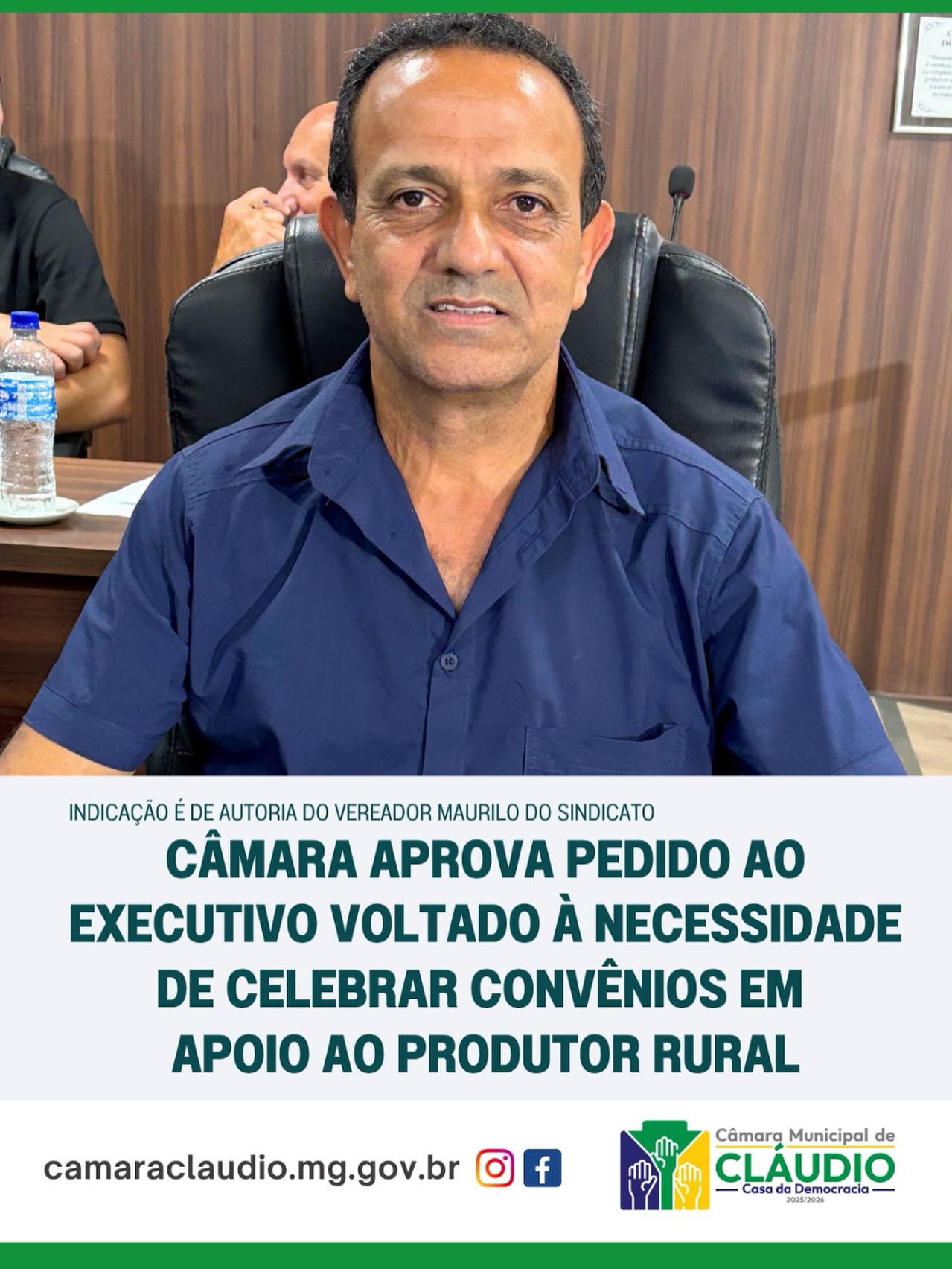 O plenário da Câmara Municipal de Cláudio aprovou, na reunião ordinária desta segunda-feira (06), a Indicação nº 103/2025, de autoria do vereador Maurilo do Sindicato (PL).