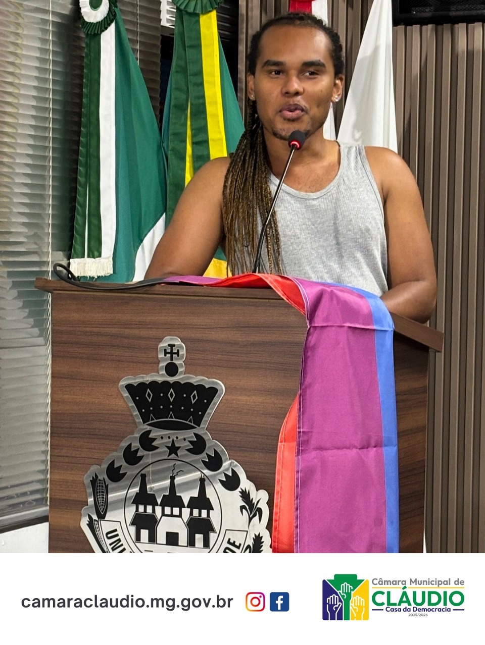 Na ocasião, Túlio Engel, que é coordenador geral do Movimento LGBTQIA+ de Cláudio, relatou a trajetória e as ações desenvolvidas pela entidade desde sua fundação, destacando o trabalho em prol do respeito, da inclusão e da diversidade no município. O orador também solicitou aos vereadores a possibilidade de destinação de recursos, por meio de emendas impositivas, em apoio às atividades do Movimento.