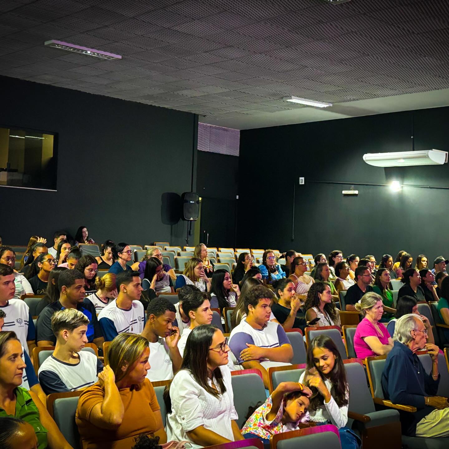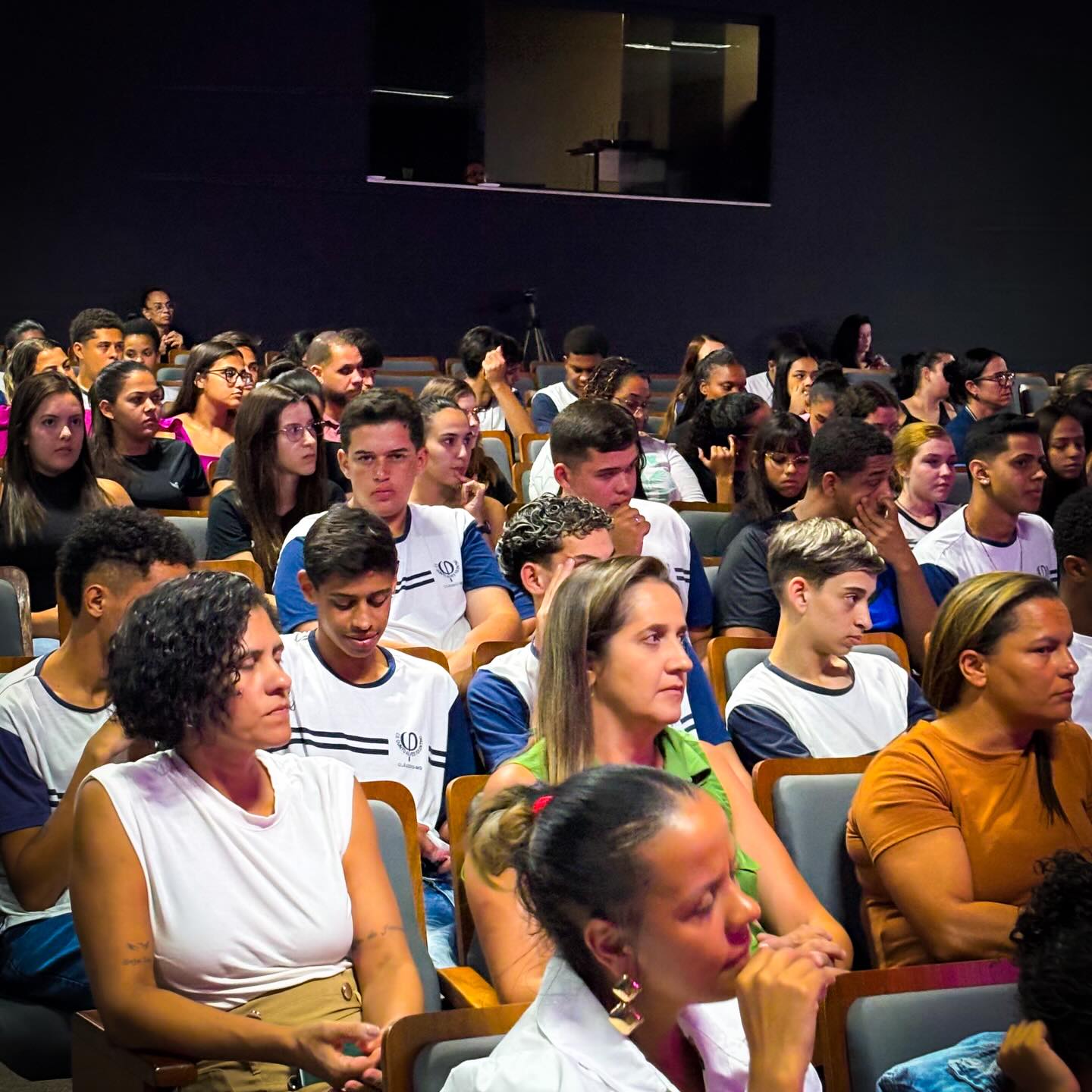 Alunos da Escola Estadual Quinto Alves e da UEMG acompanham apresentação; claudiense Carla participa em cena após convite