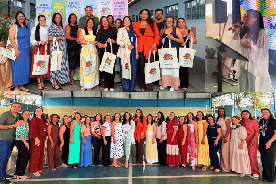 Evento na E. M. Madre dos Anjos reuniu mais de 600 servidores da rede municipal e teve palestra de Osvaldo Argollo; município recebeu menção ao Selo Ouro de Alfabetização do MEC e escola foi premiada no Programa Mais Professores