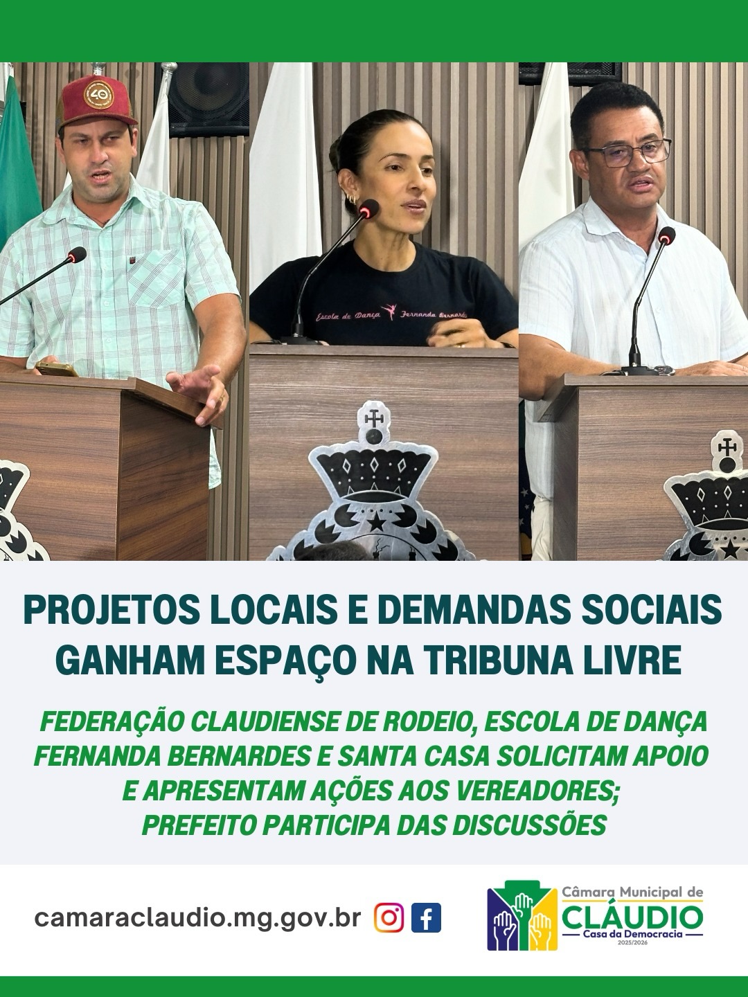 O primeiro a se manifestar foi Alisson Leonardo da Silva, representante da Federação Claudiense de Rodeio, que expôs as iniciativas desenvolvidas pela entidade e solicitou parceria dos vereadores, especialmente por meio de emendas impositivas destinadas ao fortalecimento das atividades e eventos organizados pelo grupo.