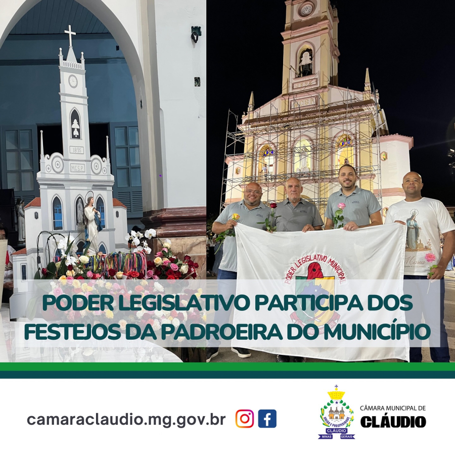 A Câmara Municipal parabeniza a Paróquia de Nossa Senhora da Conceição pela organização e convida a todos para participarem desta celebração que mantém viva a história e a espiritualidade de Cláudio.