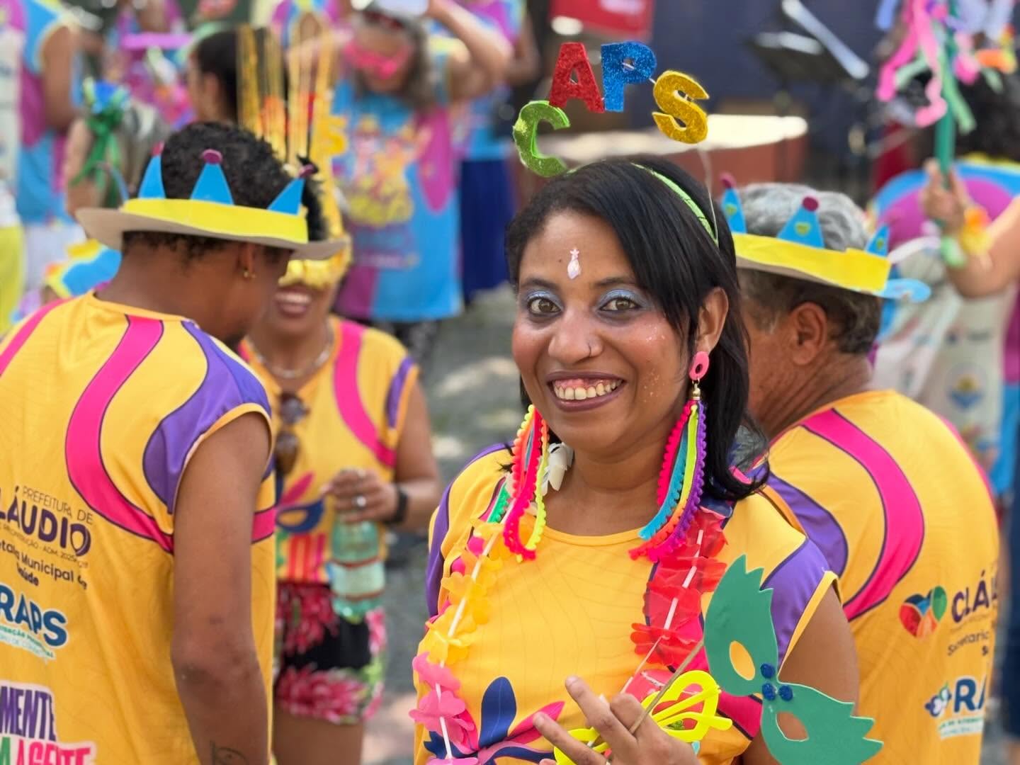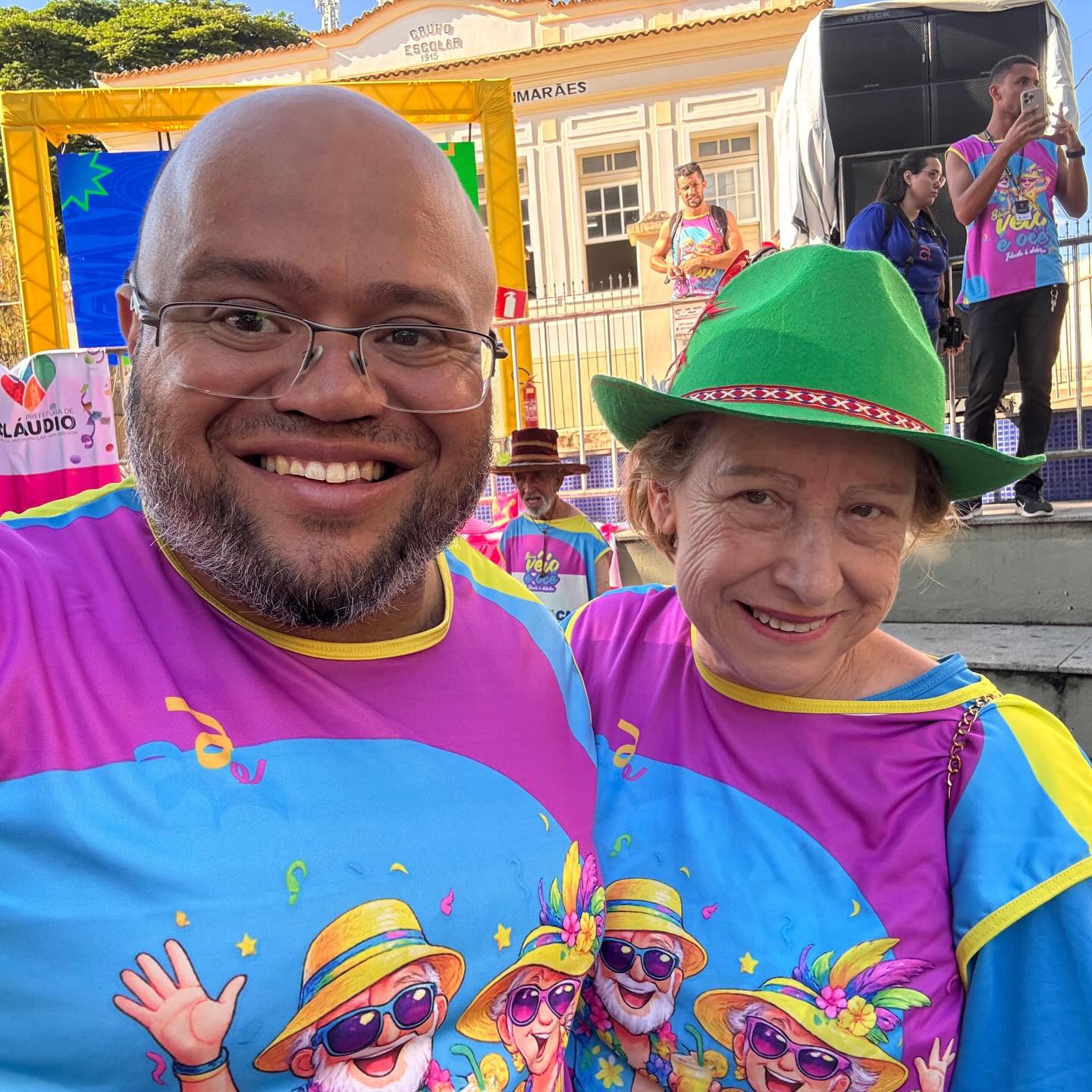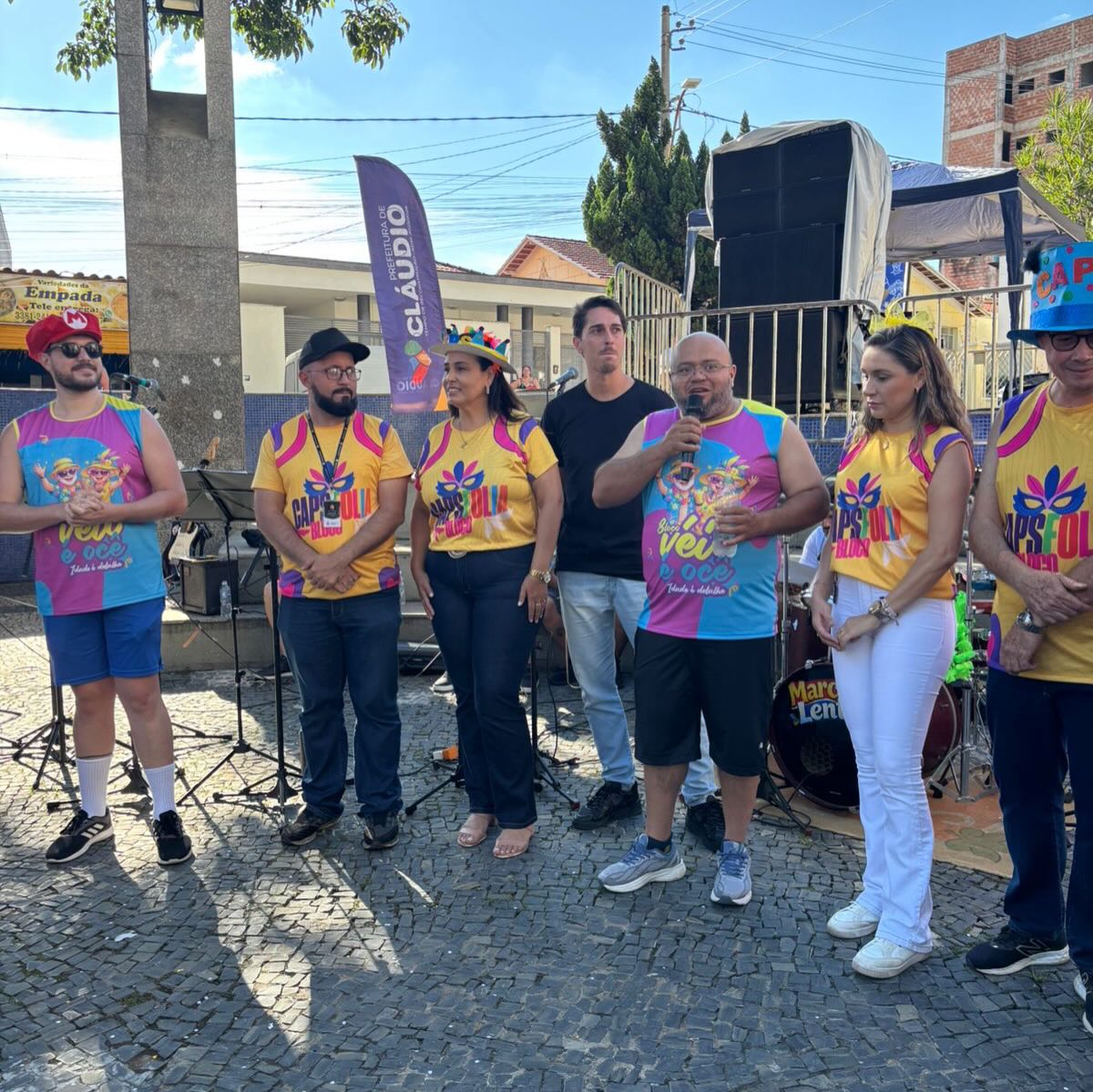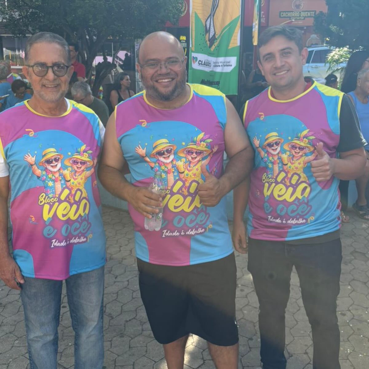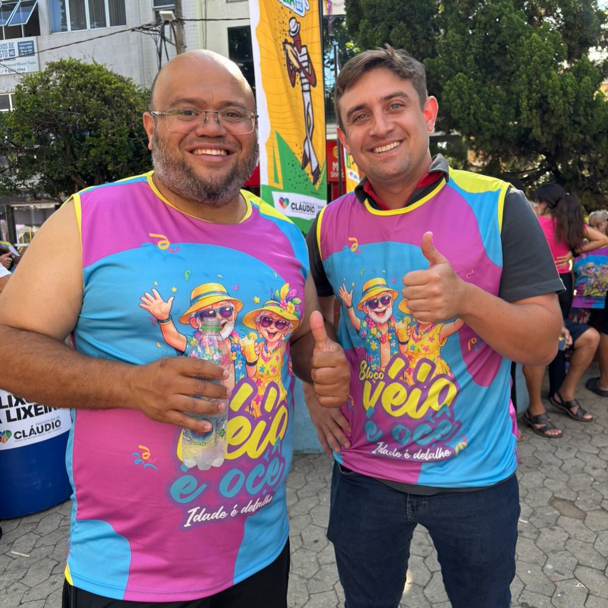 Na tarde desta quinta-feira (12), a CláudioFolia ganhou um momento especial com o Bloco Véio é Ocê, reunindo os idosos dos Lares Bom Pastor, Bom Samaritano e Santo Antônio, além do bloco do CAPS, que levou animação e até carro alegórico para a Pracinha do Clube (Levy Vitói de Freitas).