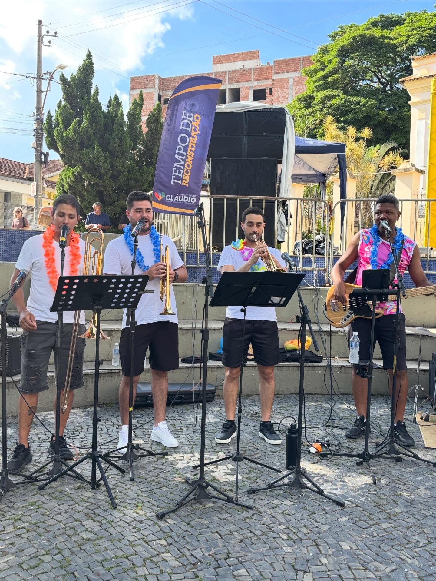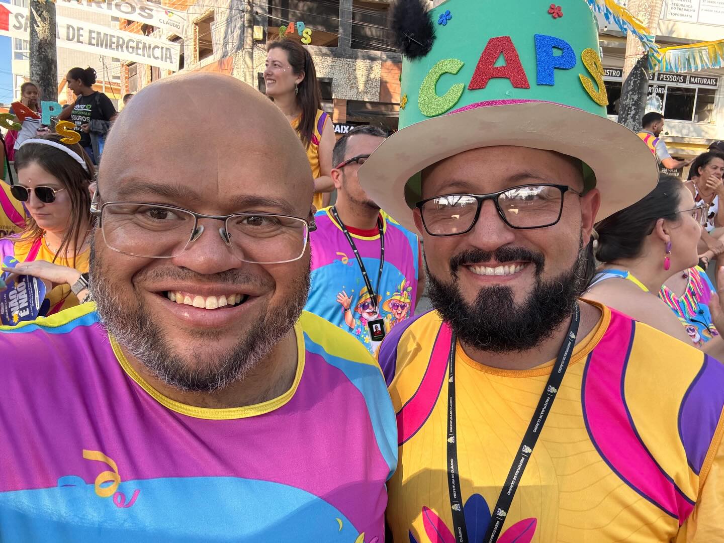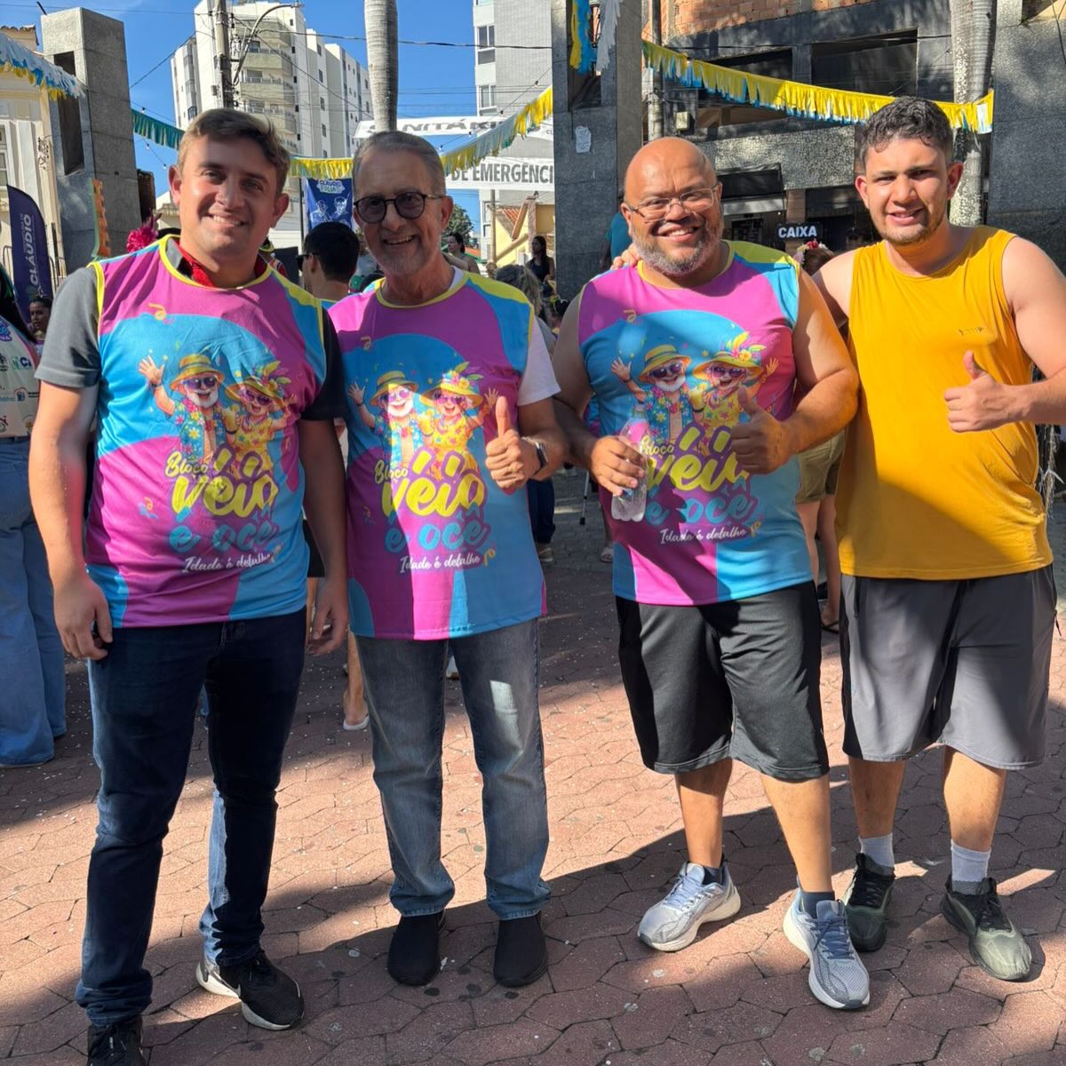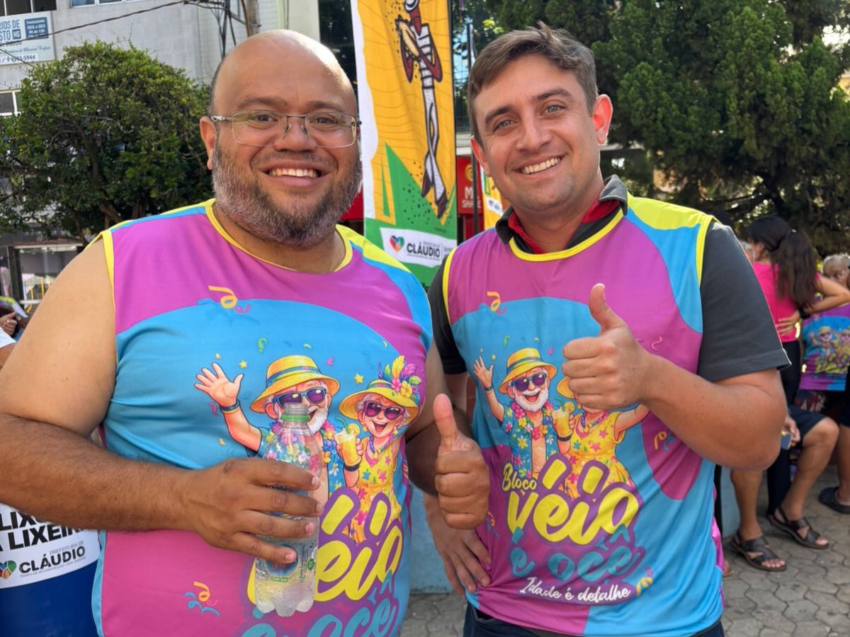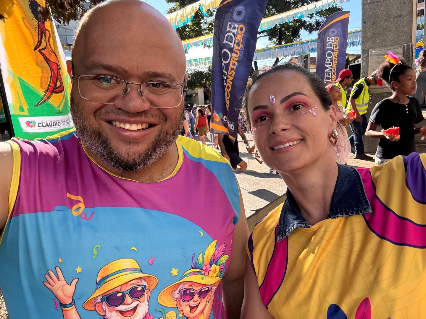 Na tarde desta quinta-feira (12), a CláudioFolia ganhou um momento especial com o Bloco Véio é Ocê, reunindo os idosos dos Lares Bom Pastor, Bom Samaritano e Santo Antônio, além do bloco do CAPS, que levou animação e até carro alegórico para a Pracinha do Clube (Levy Vitói de Freitas).