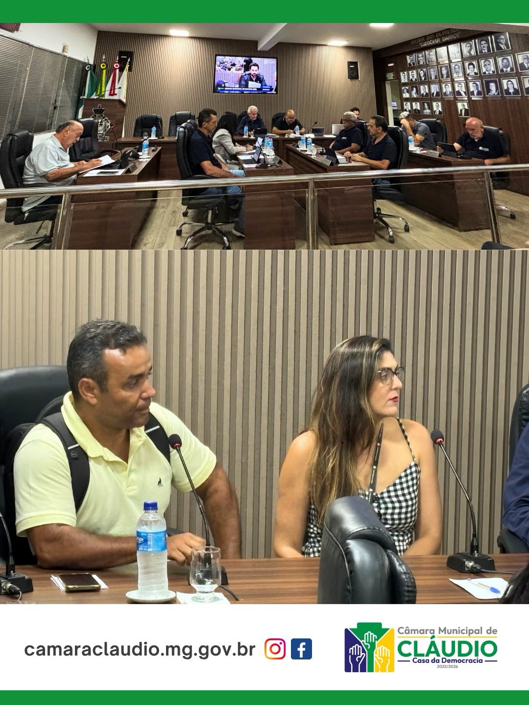 A Câmara Municipal de Cláudio recebeu, durante a sessão plenária de segunda-feira (30), o secretário municipal de Obras, Manoel Salomé, e a secretária de Meio Ambiente, Cristiane Bernardes Pereira, convocados para prestar esclarecimentos sobre a recuperação e manutenção de estradas rurais no município. O responsável pela manutenção das estradas, o servidor Sílvio Oliveira, acompanhou também as discussões através do espaço destinado ao público.